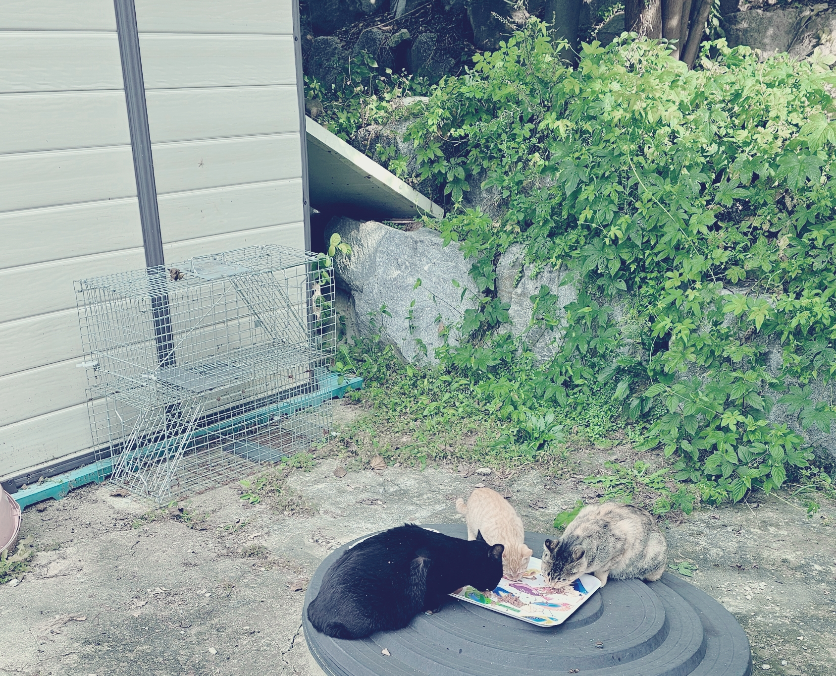 100여평이 넘은 넓은 마당에 길고양이들의 자율 급식소를 만들어주고,