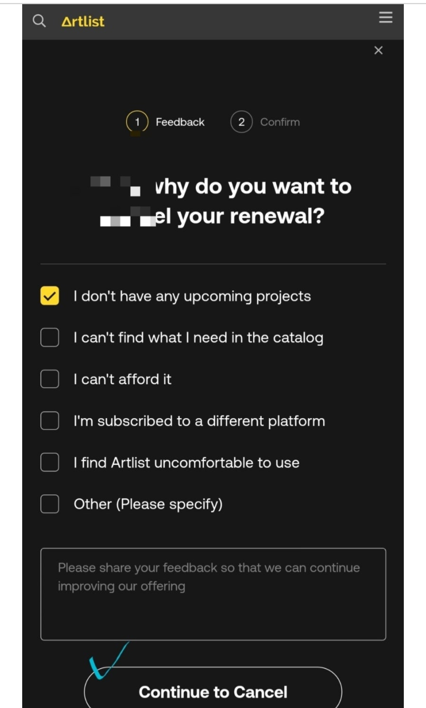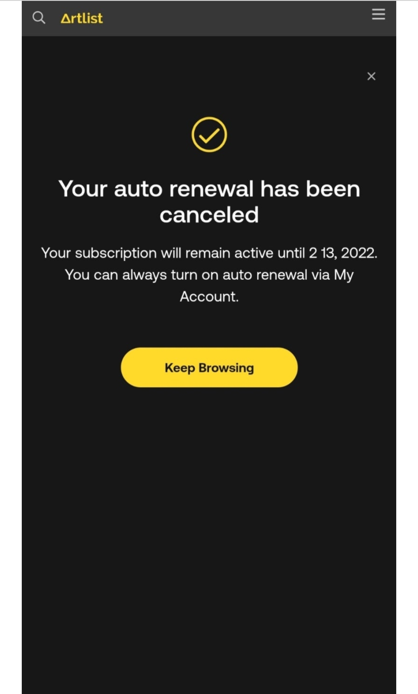 해외 유료 음원사이트인 #아트리스트 (artlist)를 구독 신청했으나 당분간은 쓸 일이 없을 것 같아서 구독 취소를 하게되었는데요, 매달 자동 결제 되는 일이 없도록 싸이트에 들어가서 구독 취소를 진행해야 합니다.