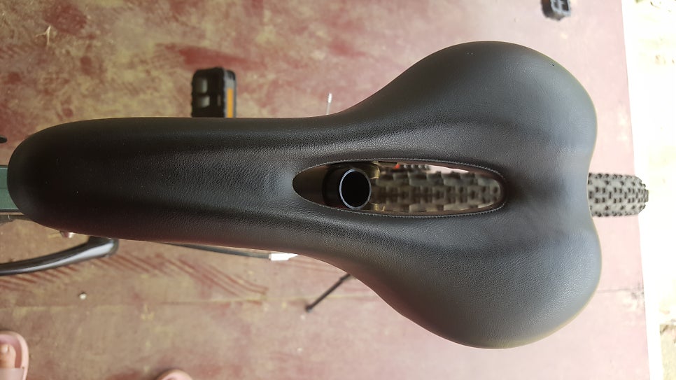 기본 안장은 다소 딱딱한 편이다. 날렵하고 딱딱한 안장은 장거리 라이딩에서 다소 몸이 피로해질수 있어서, 자전거용품 인터넷샵에서 전용 커버를 구매해서 사용하고 있다.