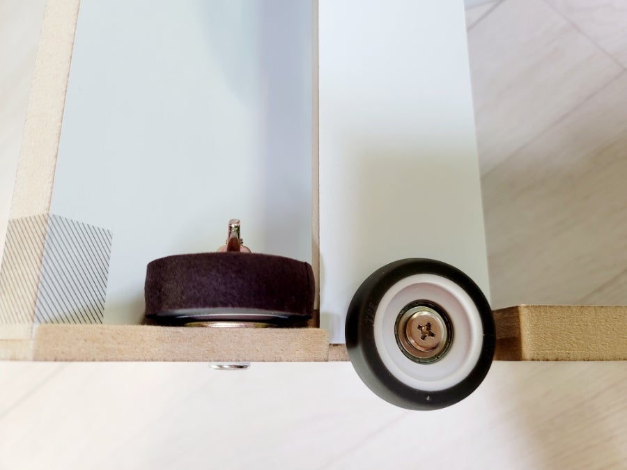 예민한 고양이들을 위해서, 캣휠의 바퀴 소음을 축소시킬 수 있는 소음방지부직포도 바퀴에 붙여준다.