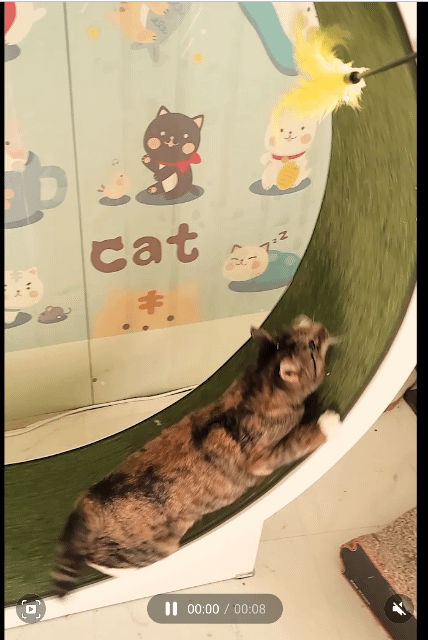 고양이가 무척 열심히 캣휠을 돌리고 있는